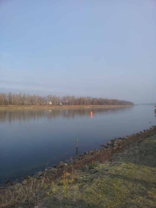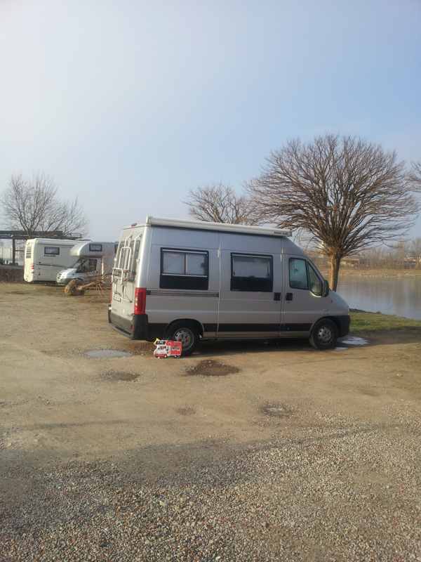Endlich waren wir wieder in Deutschland. Es war März und bitterkalt. Wir sind in Bad Breisach auf den Stellplatz direkt am Rhein gelegen. Es ist der Parkplatz eines Restaurants. Wir sind dann dort essen gegangen. Es war ein gutes essen. Auch in dieser Nacht war es frostig.