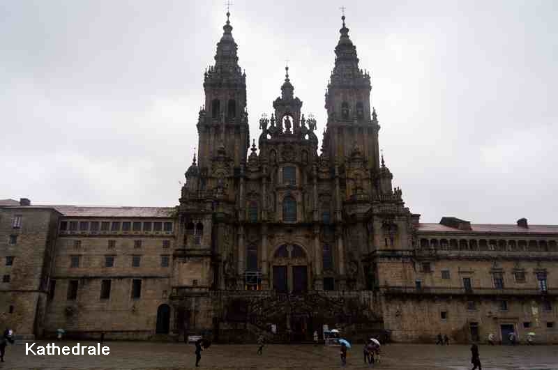 Seit gestern regnete es, die Prognosen waren schlecht das es in den nächsten Tagen aufhören würde. Mit unserem Wohnmobil standen wir auf dem städtischen Campingplatz in Santiago. Wir sind am nächsten Tag zu Fuß zur Kathedrale die wir dann auch von innen besichtigten. Wir sahen nur wenige Pilger. Auf dem Weg zur Kirche standen viele Klöster und Kirchen. da es aber immer noch heftig regnete, verzichteten wir auf eine nähere Betrachtung. Der Rundgang durch die bezaubernde Altstadt begeisterte uns sehr.